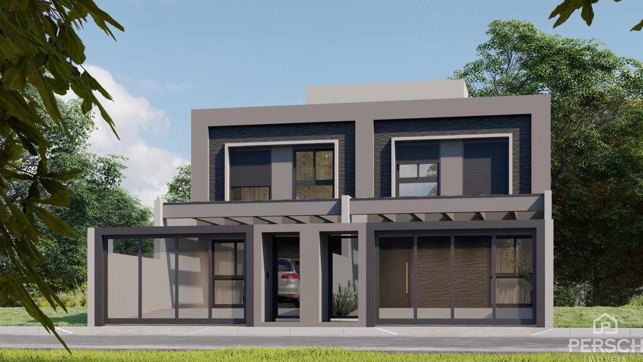 Descrição › Lindo sobrado com 3 dormitórios, sendo uma suíte, vaga coberta para 2 carros e acabamento de alto padrão. Conta com piso porcelanato nas áreas sociais e laminado nos dormitórios, escada revestida em granito e aberturas externas em alumínio. Com amplo pátio garantindo mais espaço e conforto para a família, tudo isso em uma rua calçada e com excelente posição solar.
